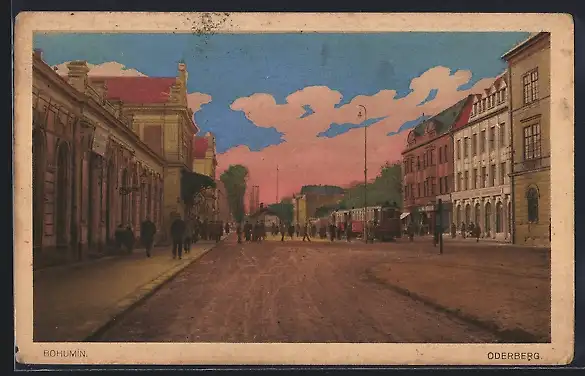 AK Oderberg, Strassenpartie mit Strassenbahn