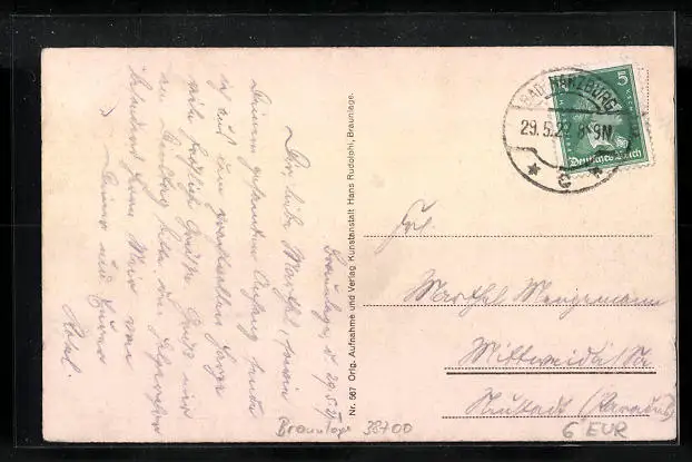 alte Ansichtskarte, gelaufen 1927, Eckknicke re., guter Zustand