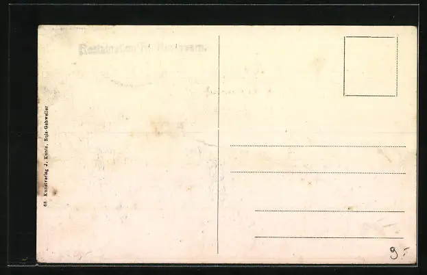 Personenbezogene Daten auf der Rückseite der Karte wurden durch blauen Textmarker unkenntlich gemacht. Die blauen Stellen sind auf die Vorderseite durchgeweicht und wirken sich negativ auf das Postkartenfoto aus