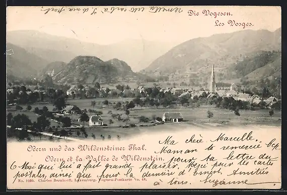 AK Odern /Wildensteiner Thal, Ortsansicht mit Vogesenblick