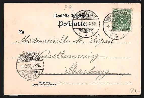alte Ansichtskarte, gelaufen 1898, Stempelspur, guter Zustand