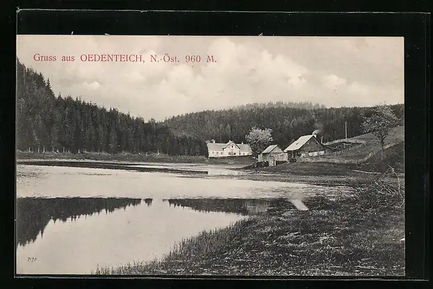 AK Ödenteich in N.-Ö., Gehöft am Teichufer