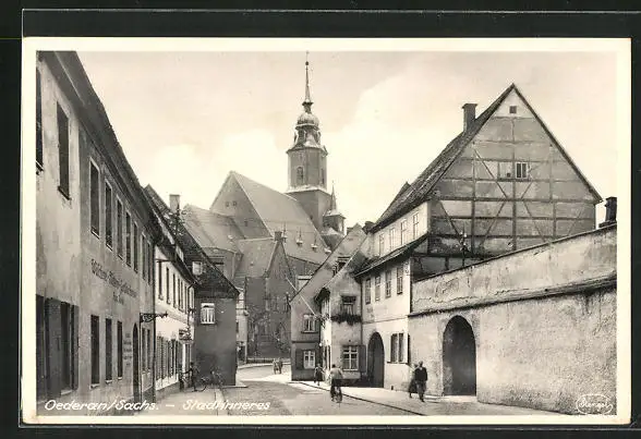AK Oederan /Sachs., Strassenpartie mit Wäscherei in der Innenstadt