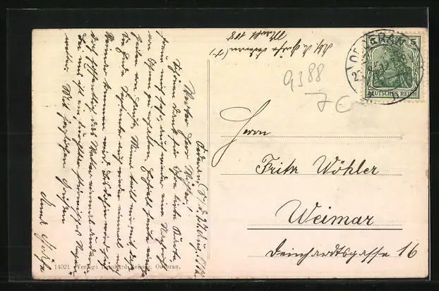 alte Ansichtskarte, gelaufen 1912, guter Zustand