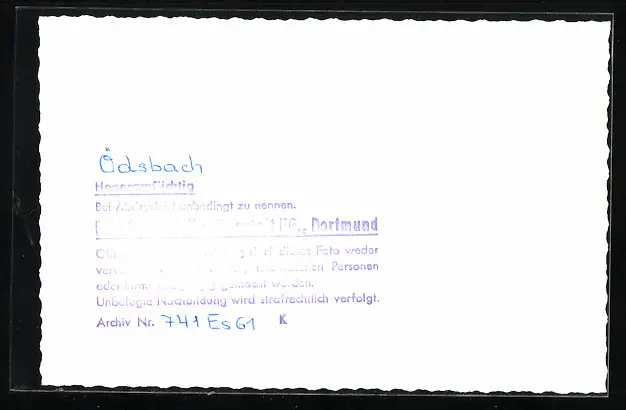 Personenbezogene Daten auf der Rückseite der Karte wurden durch blauen Textmarker unkenntlich gemacht. Die blauen Stellen sind auf die Vorderseite durchgeweicht und wirken sich negativ auf das Postkartenfoto aus