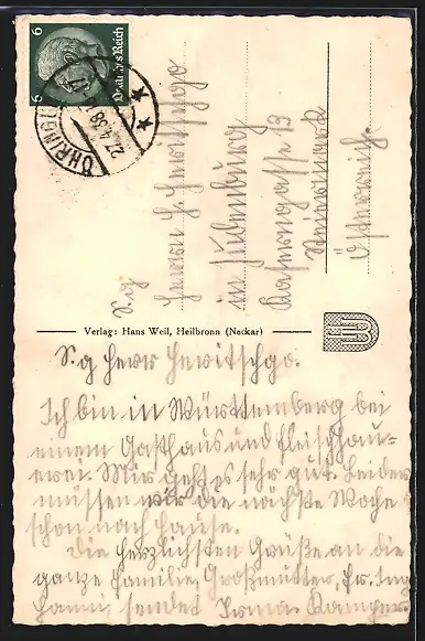 alte Ansichtskarte, gelaufen 1938, guter Zustand