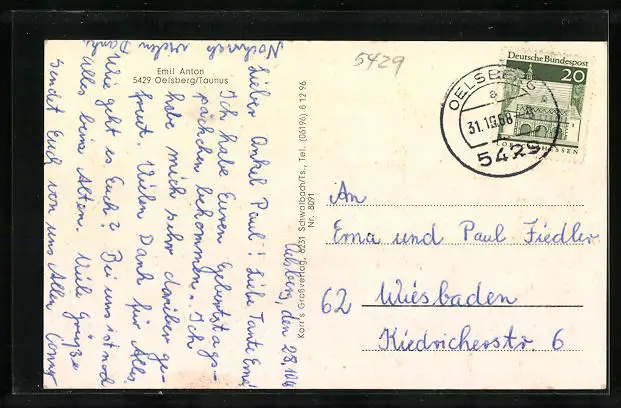 alte Ansichtskarte, gelaufen 1968, guter Zustand