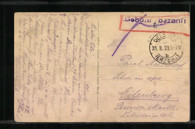 alte Ansichtskarte, gelaufen 1923, Eckknicke li. oben u. re. unten, guter Zustand