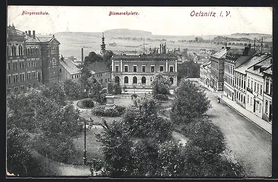 AK Oelsnitz i. V., Bismarckplatz mit Bürgerschule