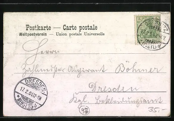 alte Ansichtskarte, gelaufen 1904, guter Zustand