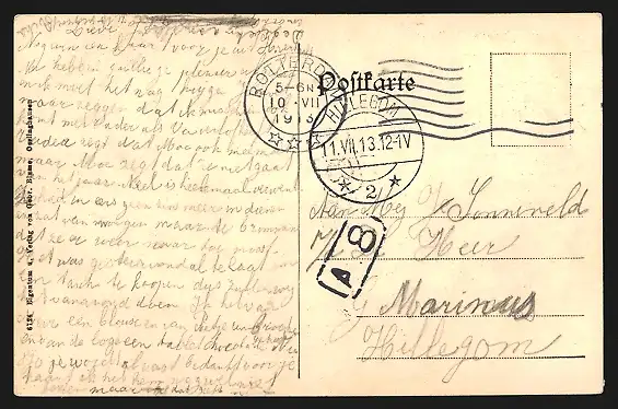 gelaufen 1913, Briefmarke entfernt, guter Zustand