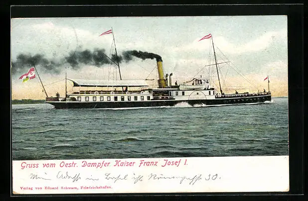 AK Österr. Dampfer Kaiser Franz Josef I. gibt Volldampf