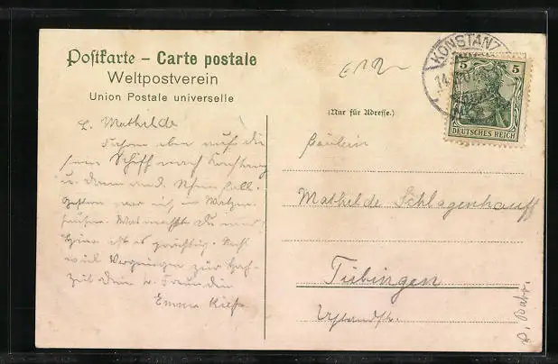 gelaufen 1907, Eckknick oben li., guter Zustand