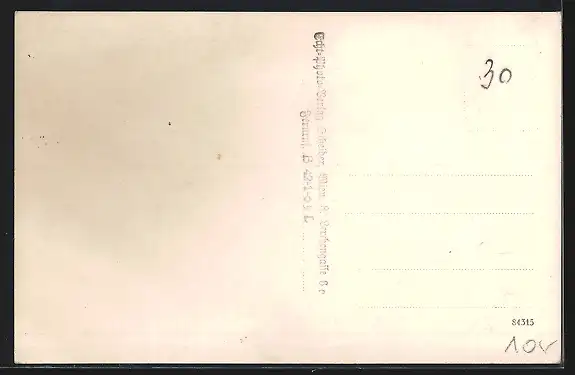 Personenbezogene Daten auf der Rückseite der Karte wurden durch blauen Textmarker unkenntlich gemacht. Die blauen Stellen sind auf die Vorderseite durchgeweicht und wirken sich negativ auf das Postkartenfoto aus