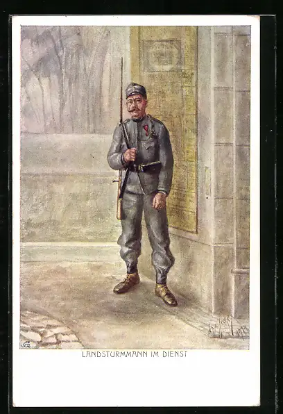 AK Österreichischer Landsturmmann mit Gewehr im Dienst