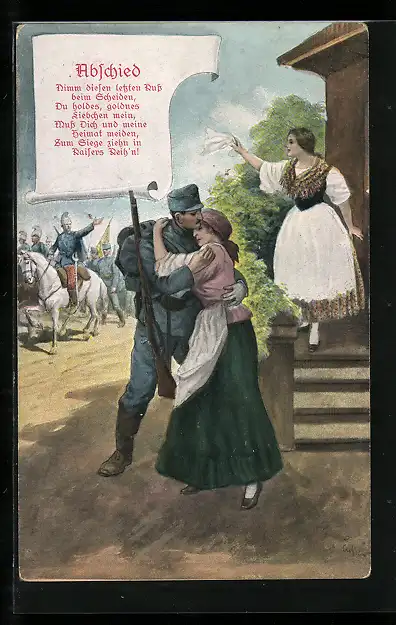 AK Österreichischer Soldat beim Abschied von der Liebsten