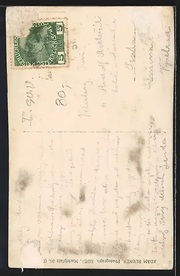 alte Ansichtskarte, gelaufen, Briefmarke teils entfernt, rückseitig Oberflächenschaden, guter Zustand