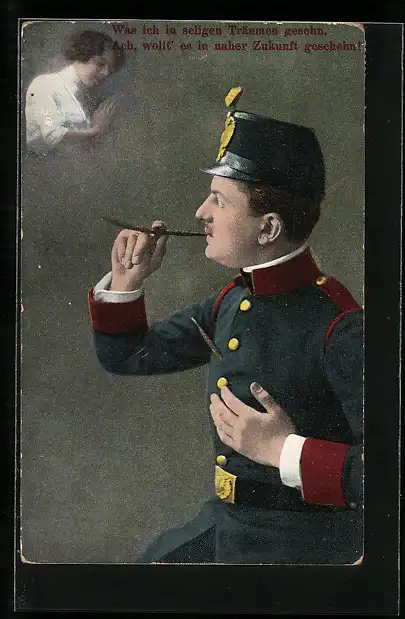 AK Österreichischer Soldat in Uniform träumt von der Liebe