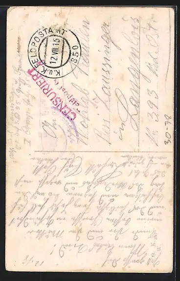 gelaufen 1915, Ecken bestoßen, guter Zustand