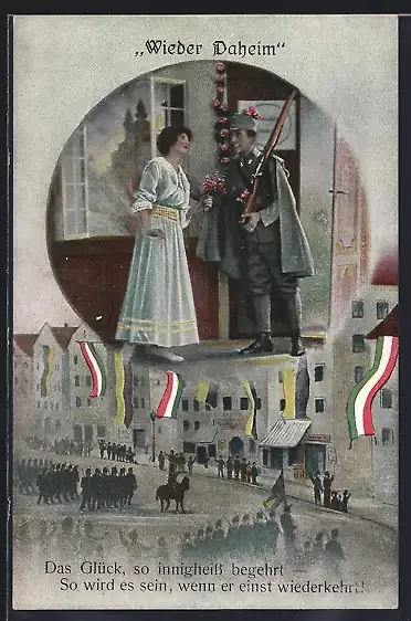 AK Österreichischer Soldat kommt zu seiner Frau nach Hause