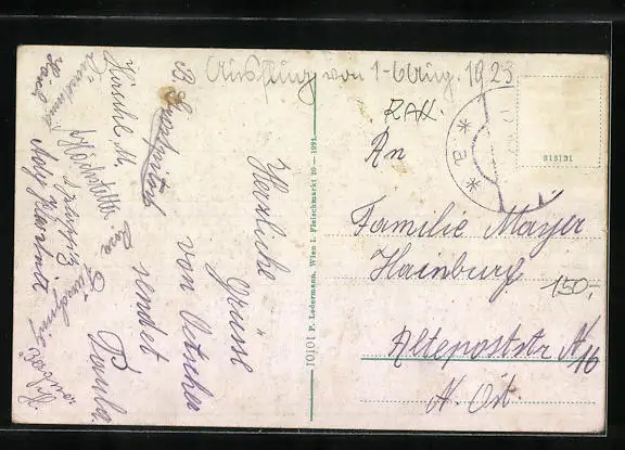 alte Ansichtskarte, gelaufen, Briefmarke entfernt, guter Zustand