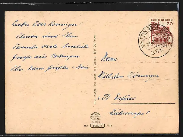gelaufen 1967, Eckknick re. oben, guter Zustand