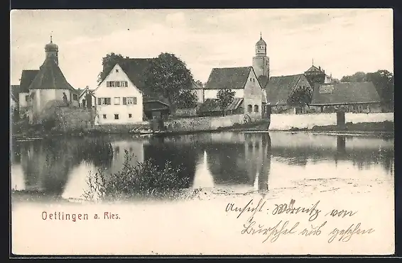 AK Oettingen a. Ries, Ortspartie mit Teich