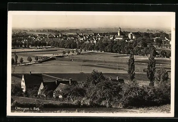 AK Öttingen i. Bay., Ortsansicht mit Feldern aus der Vogelschau
