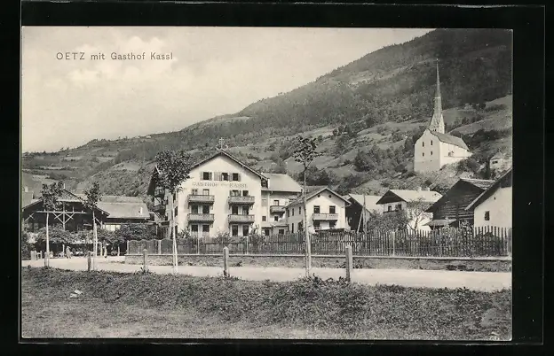 AK Oetz, Ortspartie mit Gasthof Kassl