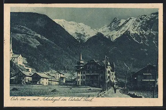 AK Oetz /Tirol, Ortspartie mit Acherkogel im Oetztal