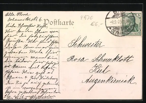 alte Ansichtskarte, gelaufen 1906, Stempelspur, guter Zustand