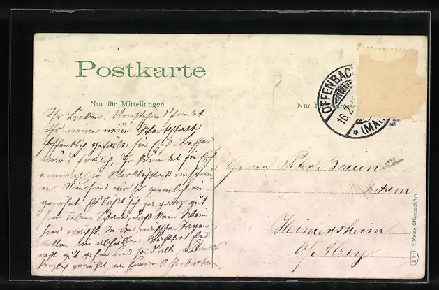 alte Ansichtskarte, gelaufen, Briefmarke entfernt, rückseitig Oberflächenschaden, guter Zustand