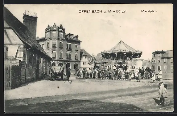 AK Offenbach a. M.-Bürgel, Marktplatz mit Karussell, Volksfest
