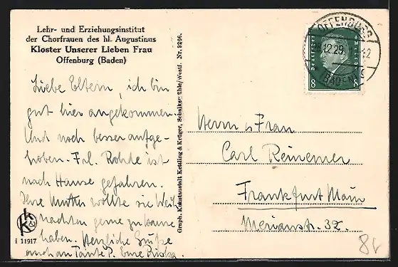 AK Offenburg (Baden), Kloster Unserer Lieben Frau - Rebgang