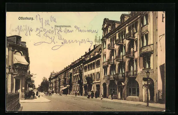 AK Offenburg, Blick in die Hauptstrasse, Union Hotel