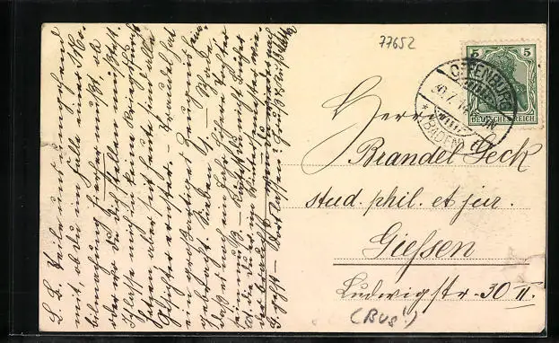 alte Ansichtskarte, gelaufen, vertikale Bugspur mittig, guter Zustand