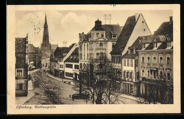 AK Offenburg, Der Rathausplatz aus der Vogelschau