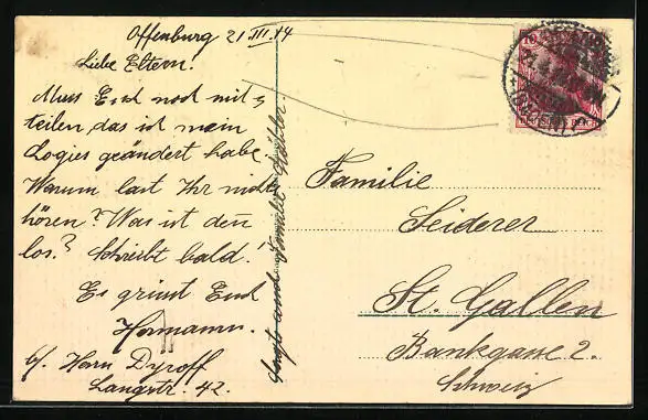 alte Ansichtskarte, gelaufen 1914, guter Zustand