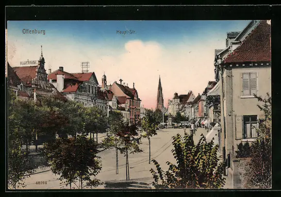 AK Offenburg, Haupt-Str. mit Kirche