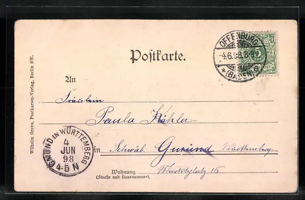 alte Ansichtskarte, gelaufen 1898, guter Zustand