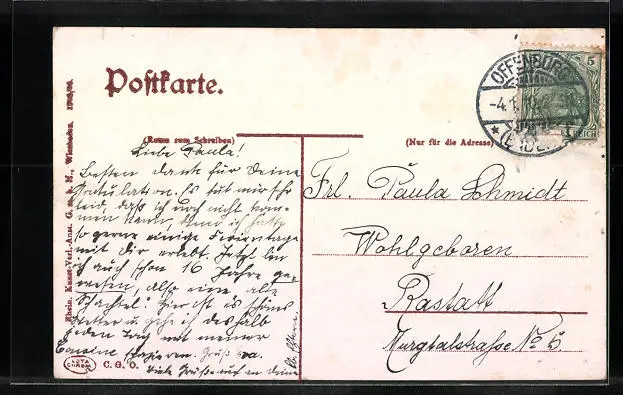 alte Ansichtskarte, gelaufen 1910, Einriss oben re., guter Zustand