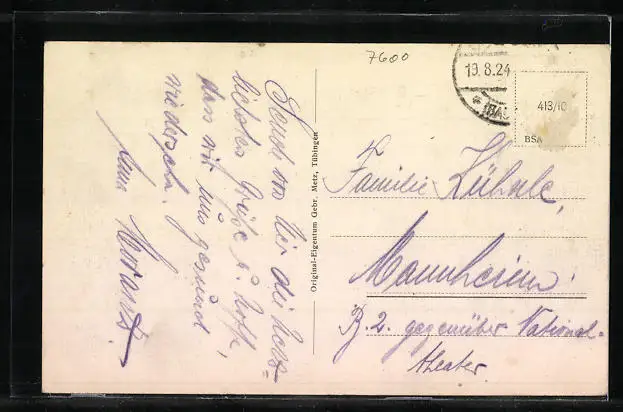 alte Ansichtskarte, gelaufen 1924, Briefmarke entfernt, guter Zustand