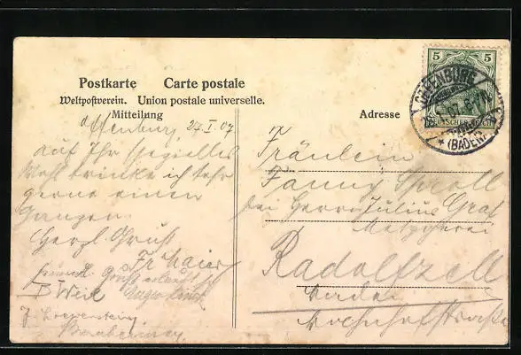 alte Ansichtskarte, gelaufen 1907, guter Zustand