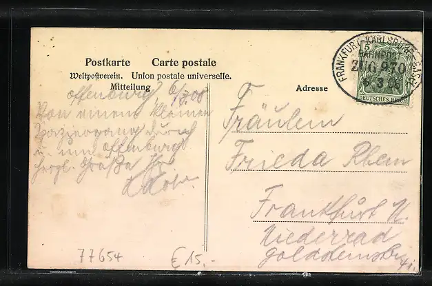 alte Ansichtskarte, gelaufen 1908, guter Zustand