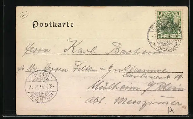 alte Ansichtskarte, gelaufen 1905, guter Zustand