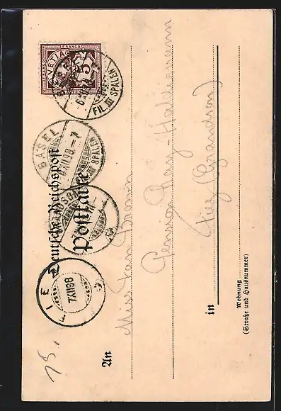 alte Ansichtskarte, gelaufen 1898, Stempelspur, guter Zustand