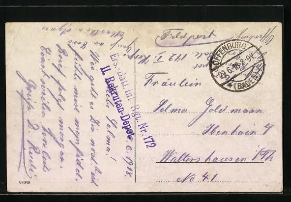 alte Ansichtskarte, gelaufen 1918, Eckknicke re., guter Zustand