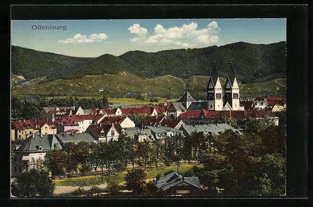 AK Offenburg, Ortsansicht aus der Vogelschau