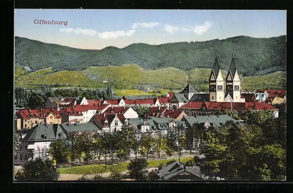 AK Offenburg, Ortsansicht aus der Vogelschau