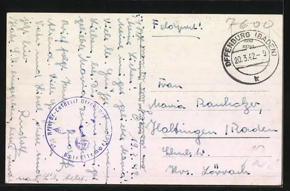 alte Ansichtskarte, gelaufen 1942, Eckknick li. oben, guter Zustand